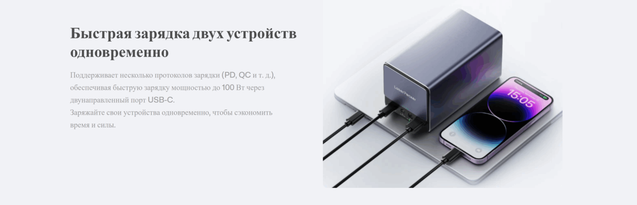| Выходная мощность | До 100 Вт (USB-C PD) |