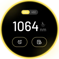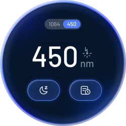 У вас есть два варианта переключения между типами лазеров на LaserPecker 4. Вы можете просто провести пальцем влево или вправо по сенсорному экрану, чтобы изменить тип лазера (синий 450 нм или инфракрасный 1064 нм). Кроме того, вы можете управлять и выбирать нужный тип лазера в приложении LaserPecker Design Space.