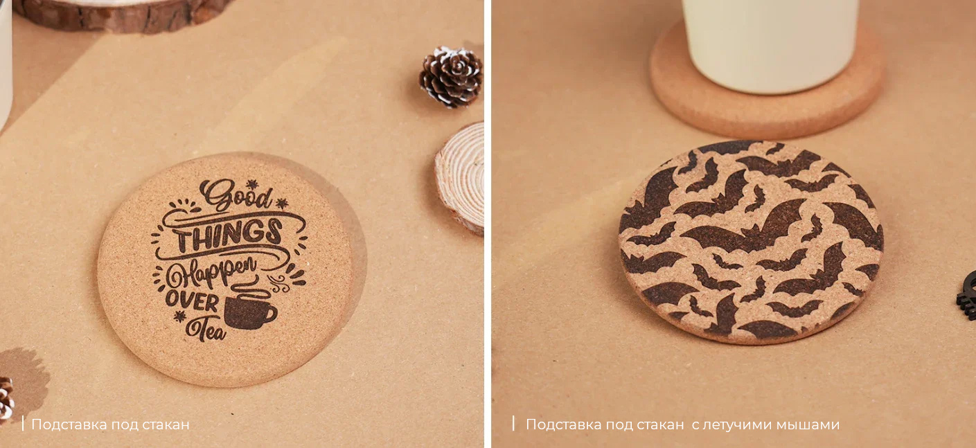 Глубина резки: 8 мм пробковое дерево, 5 мм темный непрозрачный акрил