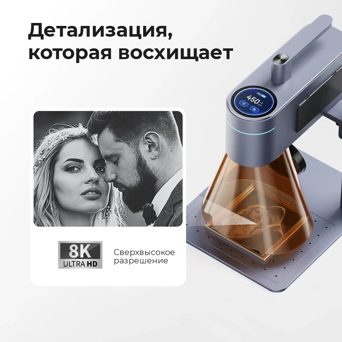 • Скорость гравировки до 4000 мм/с и разрешение 8К обеспечивают студийное качество результатов всего за несколько минут.
