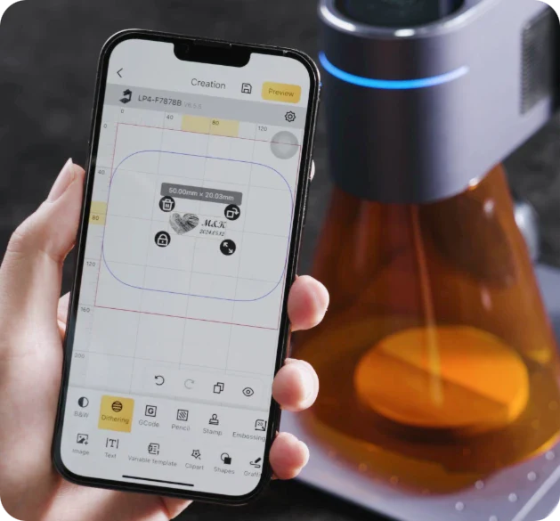 • Переключайтесь между типами лазеров одним касанием и мгновенно повторяйте проекты с помощью функции «Гравировать снова».